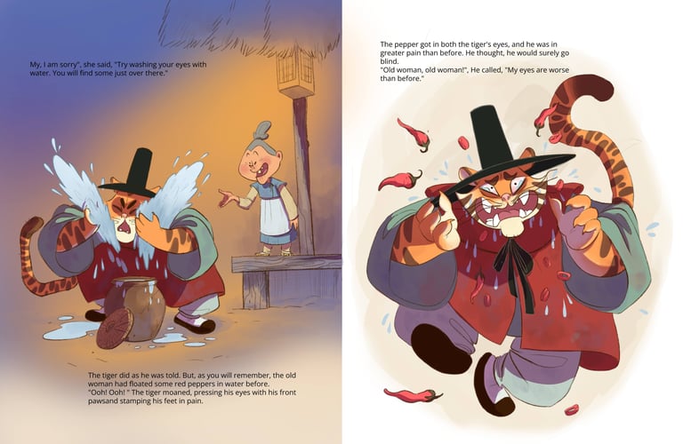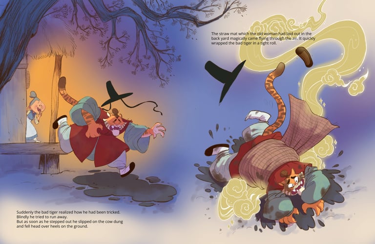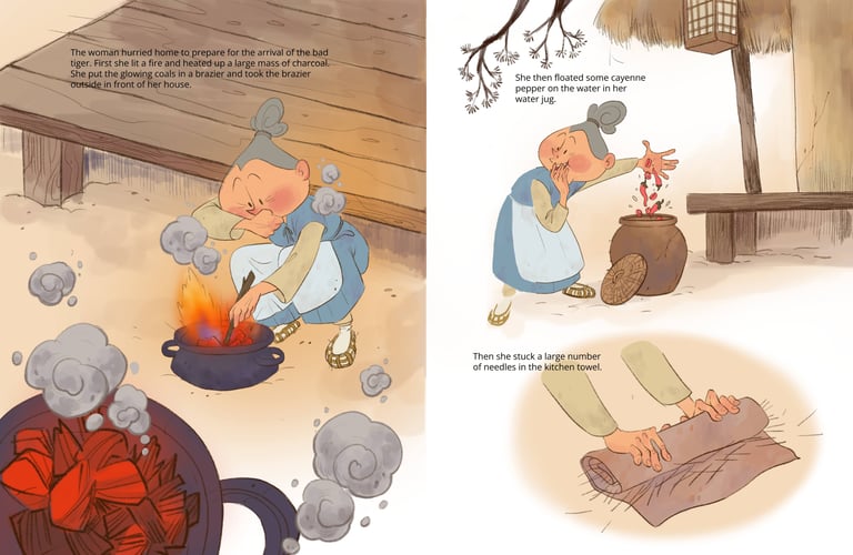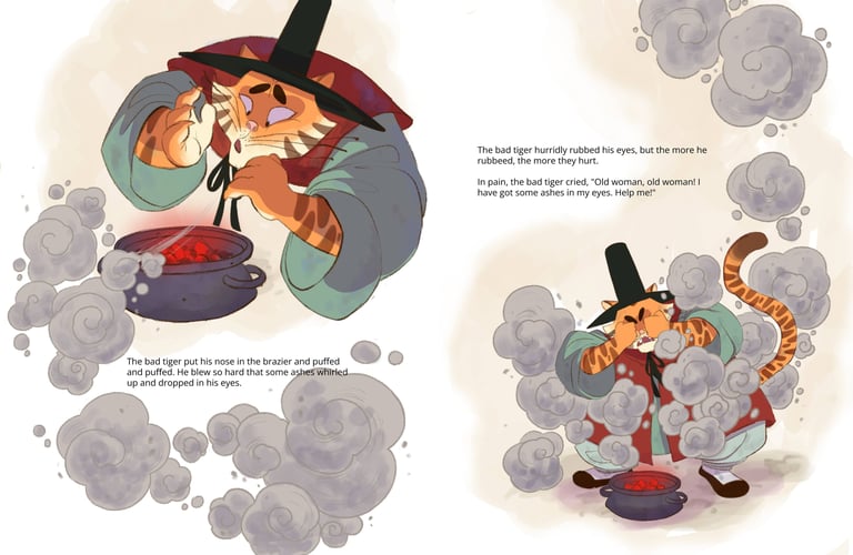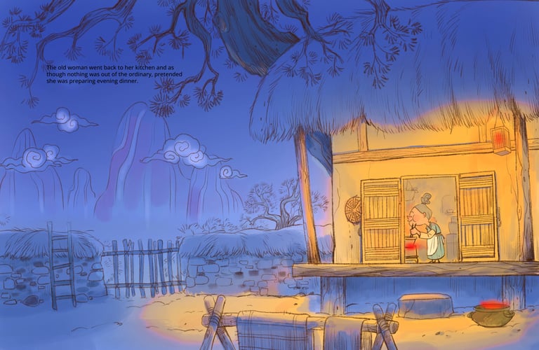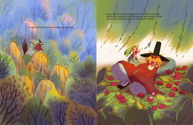 Inspired by my love for Korean culture and language, this picture book reimagines a classic public-domain Korean folktale through expressive characters and atmospheric storytelling. Created over the course of three weeks using Clip Studio Paint, the project explores mood, color, and cultural detail to bring this timeless story to life in a fresh, modern way.